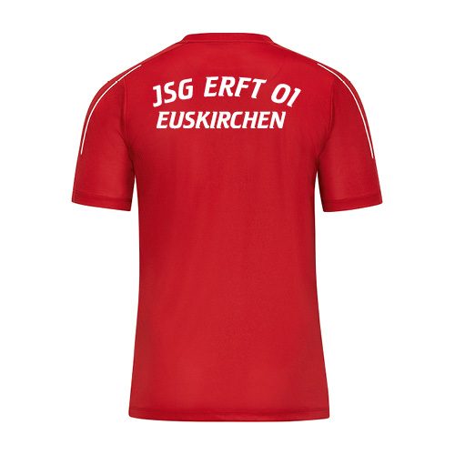 Die Budget Ausführung beinhaltet eine Budget Flex-Folie, das JSG Wappen auf der Brust in bunt und die Rückennummern ohne JSG-Wappen.